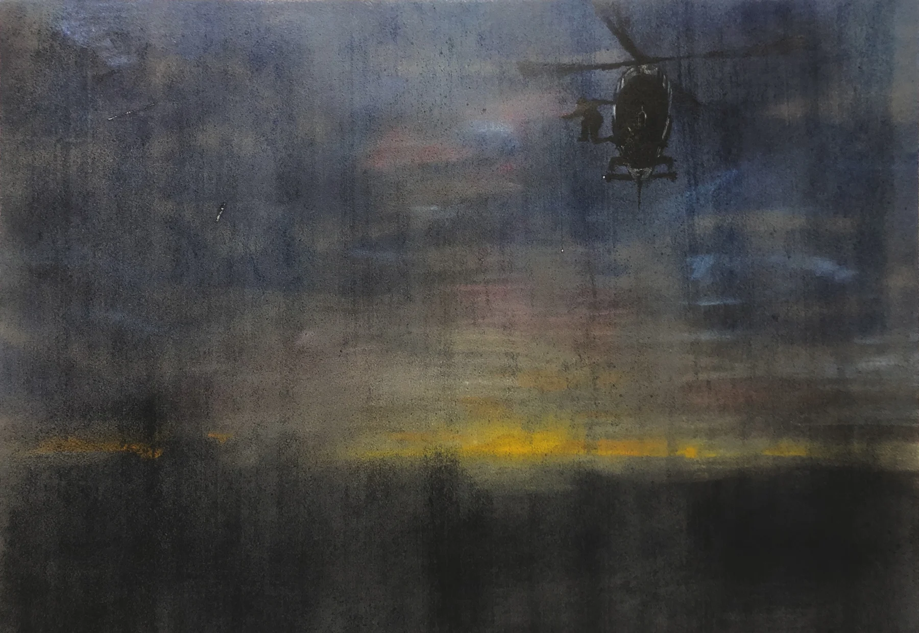 The surface, an abstract backdrop to the focal point, which pictures fellow stuntman, Andrew Burford, leaping from a helicopter to an airbag 50 feet below.